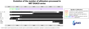 Figure 2: Evolution of the number of altimeters processed in NRT conditions. See Copernicus Marine product section for details.